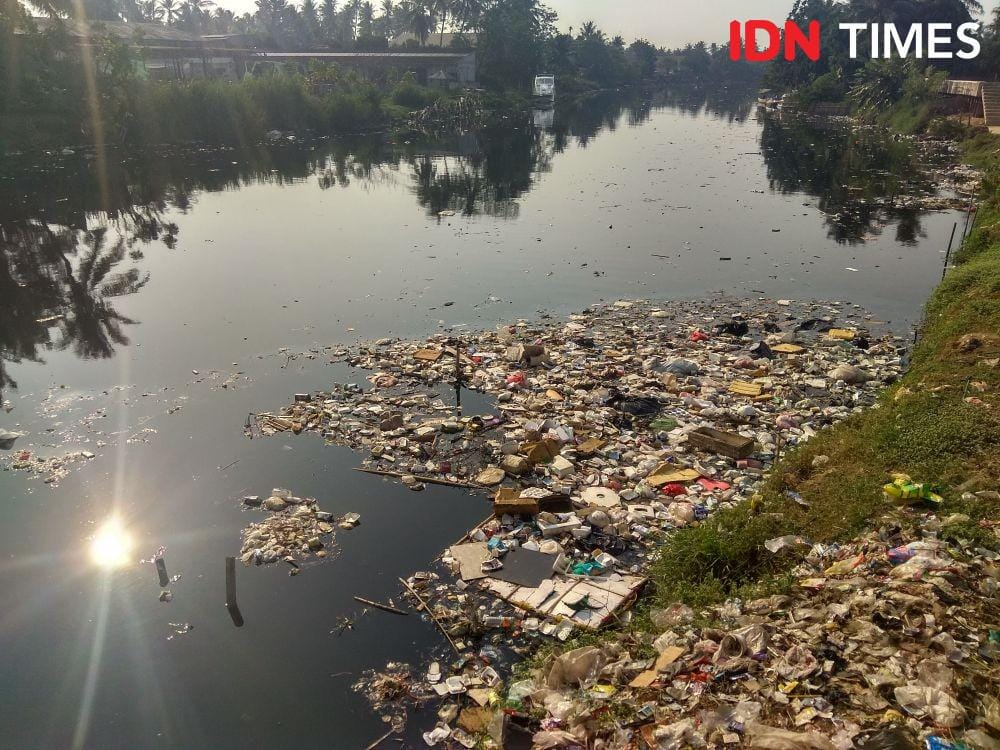 Kabupaten Tangerang, IDN Times - Kemarau yang melanda Kabupaten Tangerang, Banten, berdampak pada kondisi muara Sungai Cisadane. Selain berwarna hitam, Sungai Cisadane juga berbau dan dipenuhi sampah.